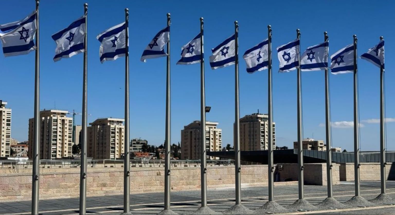 Bandeiras de Israel são vistas hasteadas perto do Knesset em Jerusalém, Israel, em 19 de março de 2025 - Jaap Arriens/NurPhoto via Getty Images